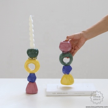 Bixuan Handblown Art Vidro Titular Chá Luz Empilhado Anel Pepita De Pebble Bloco De Cor Opaca Moderno Memphis Escultural Doces Cores