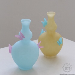 BIXUAN Handblown Double Gourd Tabletop Vaso Fosco Matte Pastel Limão Azul Borboleta Vidro Escultural Vaso Mouthblown Aplicado