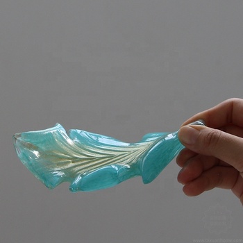 Bixuan Handblown Vidro Artesanato Folha Bandeja Prato Catchall Jóias Titular Anel Incenso Tealight Bowl Ouro Brilho Presente Decorativo